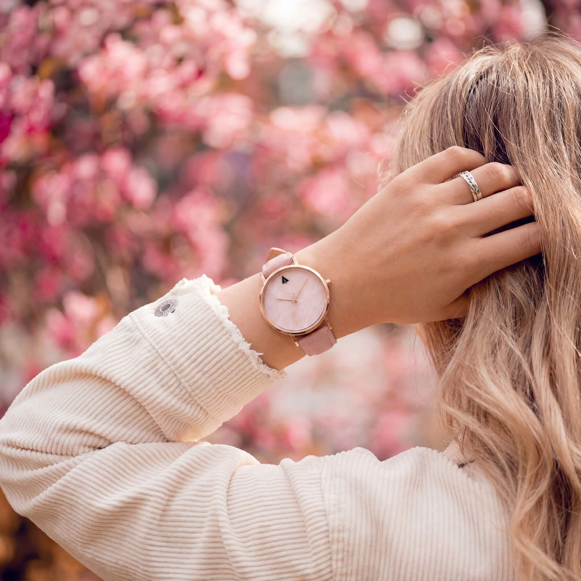 What makes it stand out? No two dials are exactly the same – each one has its own subtle stone pattern, giving your pink rose marble watch a personal, one-of-a-kind feel.