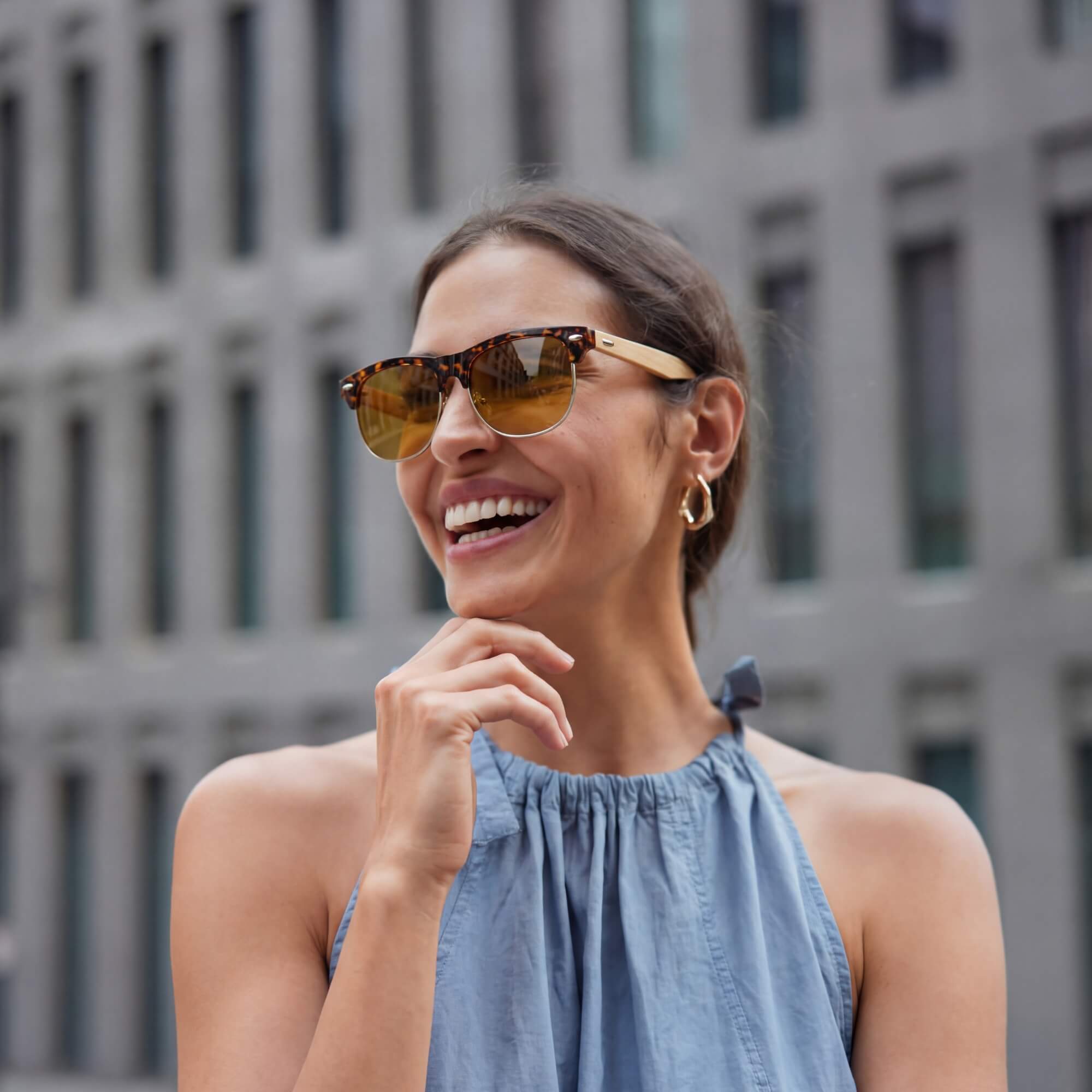 Unsere aus organischen Holzmaterialien und zeitlosem Design gefertigten Sonnenbrillen vereinen Mode mit Nachhaltigkeit.