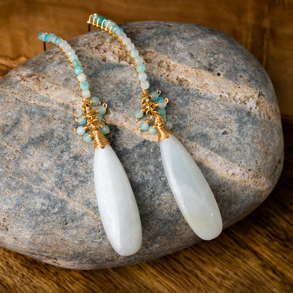 Umarmen Sie die Prinzessin in sich selbst mit diesem exquisiten Paar Amazonit-Ohrringe.