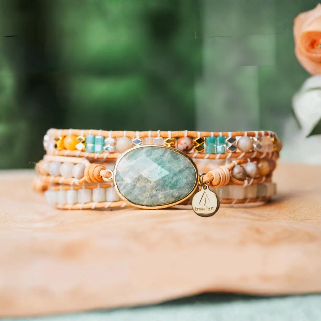 Dreifach wickelbares Armband mit Amazonit-Stein