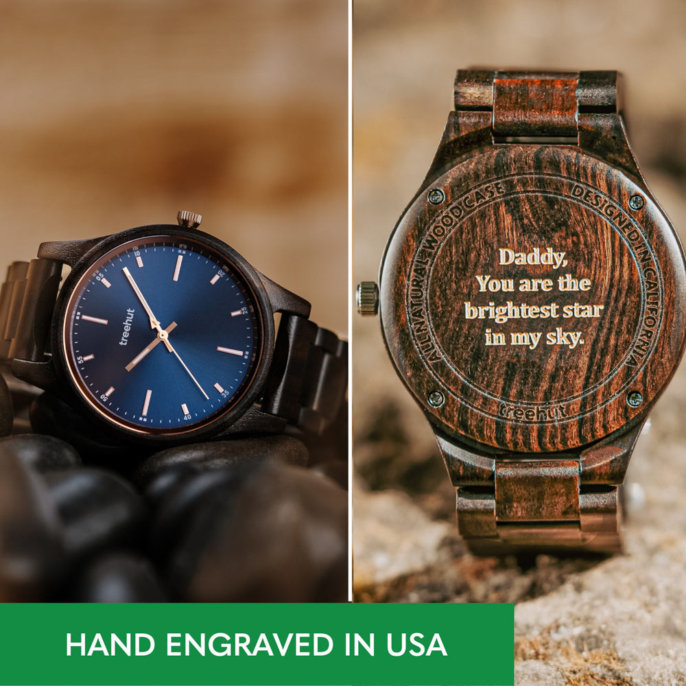 Tauchen Sie mit unseren Holzuhren in die Essenz der Nachhaltigkeit ein – nicht nur Accessoires, sondern ein bewusster Lebensstil. Jede Uhr wird aus verantwortungsvoll gewonnenem Holz geerntet und ist ein Beweis für unser Engagement für die Umwelt. Wenn Sie sich für eine Treehut-Uhr entscheiden, tragen Sie nicht nur ein Stück Natur bei sich, sondern geben auch ein Statement für nachhaltiges Leben ab. Jedes Ticken ist eine Erinnerung an das empfindliche Gleichgewicht, das wir mit dem Planeten teilen, und schafft eine harmonische Verbindung zwischen Eleganz und umweltbewussten Entscheidungen.