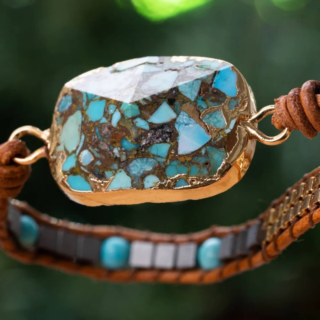 - Materials: natural turquoise stone and genuine leather