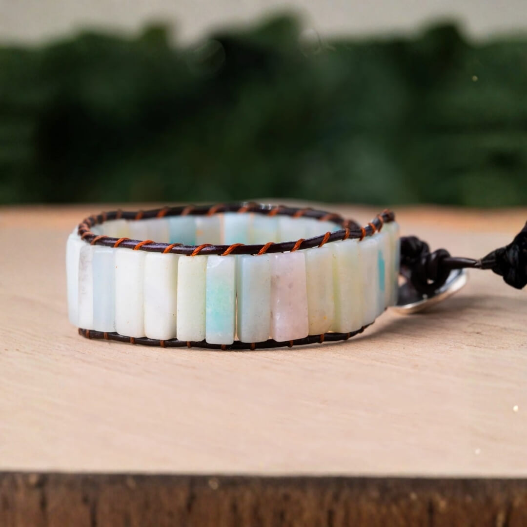- Materials: Natural Amazonite Stone and Genuine Leather