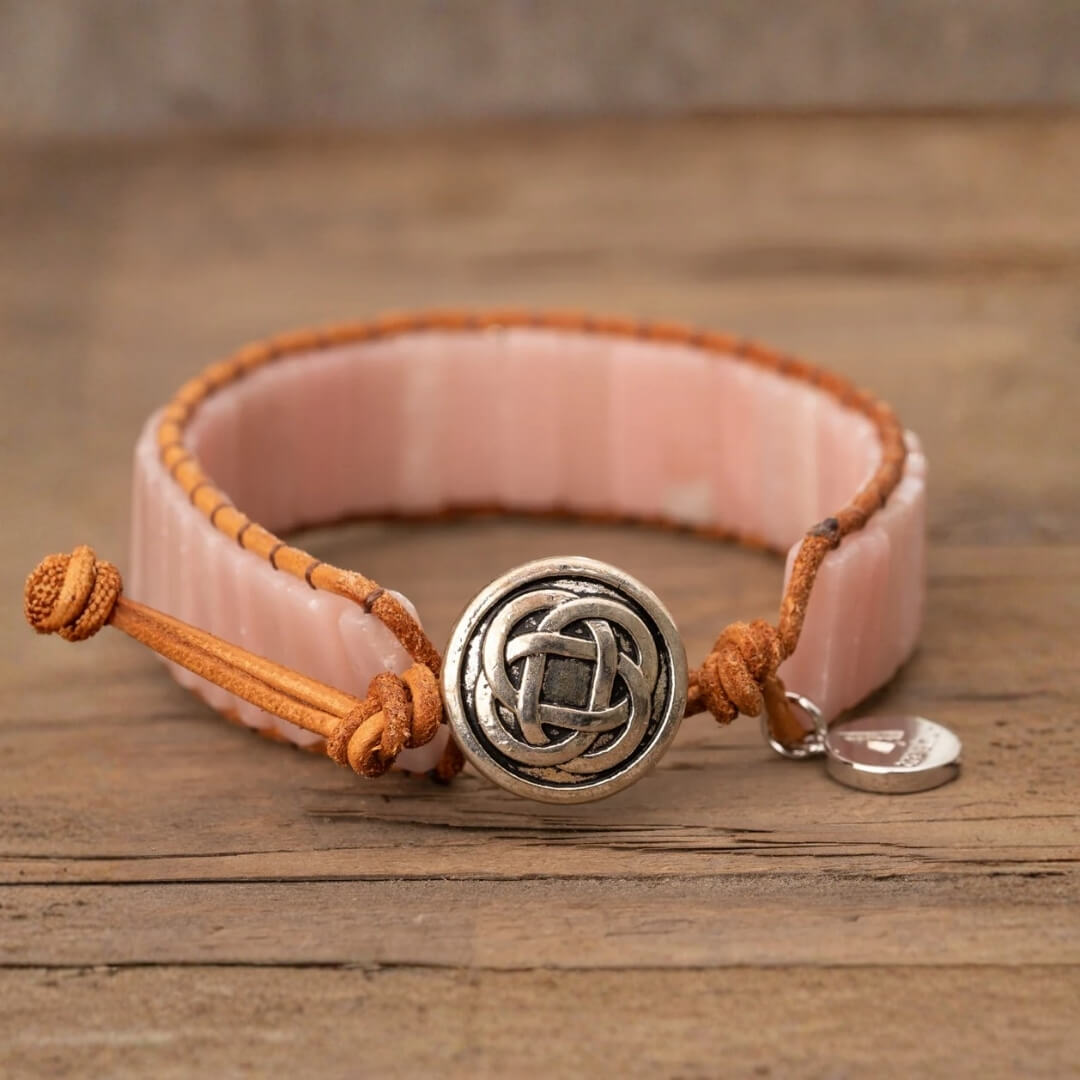 - Materials: Natural Pink Opal Stone and Genuine Leather