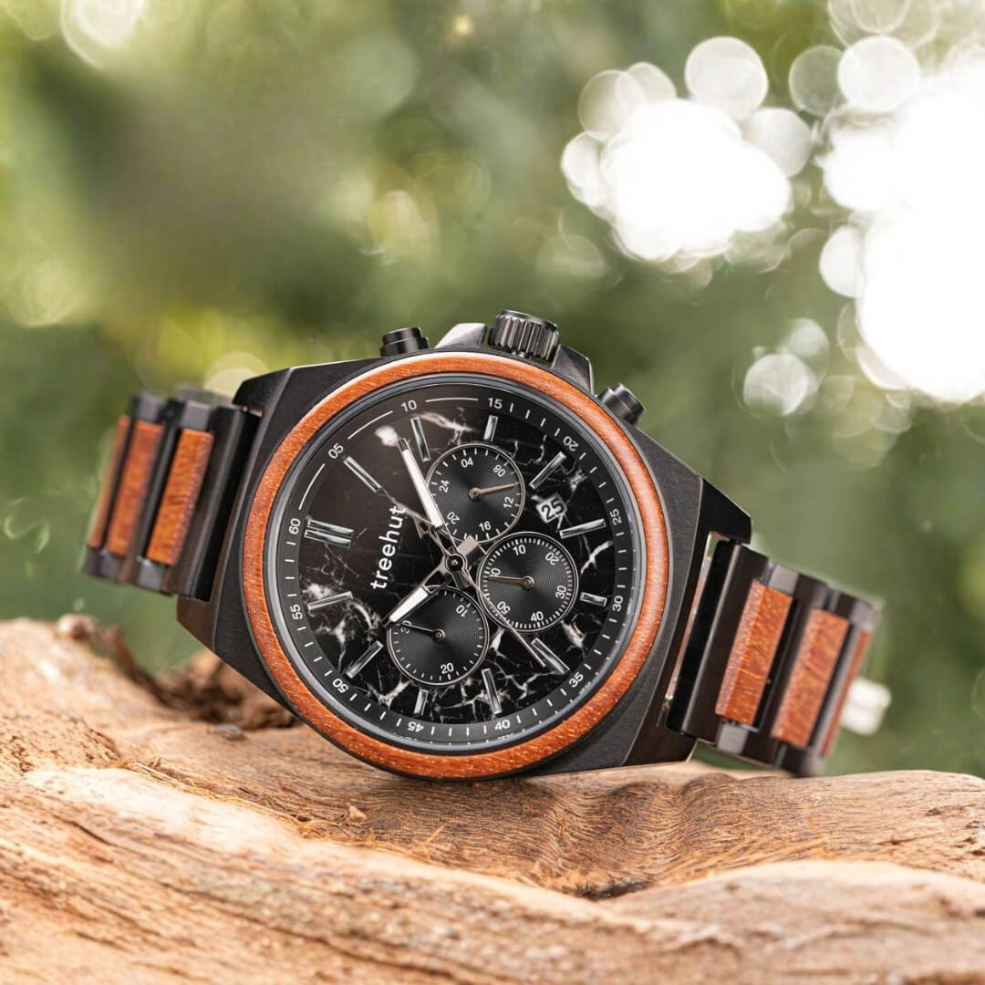 Les montres en bois Treehut de bonne qualité peuvent être durables et constituent une alternative unique et élégante aux matériaux traditionnels. Un entretien approprié est essentiel pour maintenir la durabilité d'une montre en bois. Évitez de l'exposer à des températures extrêmes, à une humidité excessive ou à un ensoleillement prolongé. Nettoyez et entretenez régulièrement le bois pour préserver son apparence.